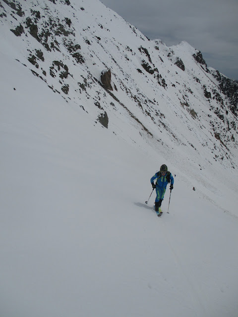Primer pujarem cap al Coll de la Marrana, farem una gran diagonal per anar a buscar un cim que ja es veu al costat del Coll de la Coma de l'Orri. Primera baixada cap a la Coma de l'Orri per una neu fantàstica fins que s'acaba la neu. Tornem a posar pells i remuntem de nou per la Coma, però aquest cop per al marge dret, amb una pujadota final, molt dreta.
