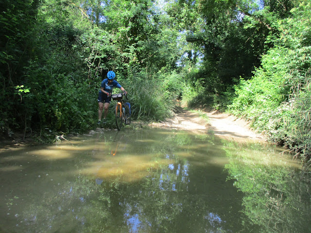 Per no agafar la carretera, la creuarem i prenem una pista que surt al davant, al cap de pocs metres trobem una cadena que la passem per al costat i a continuació ja una tanca a on la pista s'acaba, és aquí a uns metres abans que prenem un corriol no gaire definit que ens porta a la llera del Risec de Manol, aquí ens tocarà creuar a baix de la bici entre còdols, fins a l'altre cantó que ja veiem el corriol (no el que puja), per seguir per un curt i bonic tram al costat del rierol fins al poble d'Avinyonet.